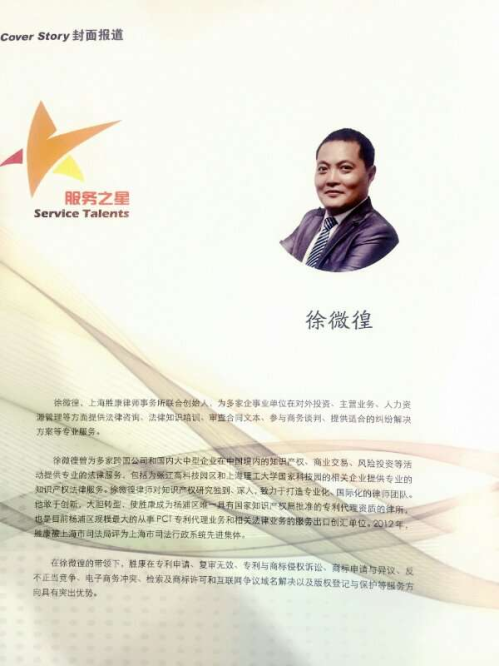 4月26日,2017年上海知識產(chǎn)權園組織的“知識產(chǎn)權服務宣傳周”活動在長陽創(chuàng)谷舉行,上海勝康律師事務所徐微徨主任應邀出席,并榮獲2016年度《上海知識產(chǎn)權》編輯推薦獎,榮膺“服務之星”稱號。