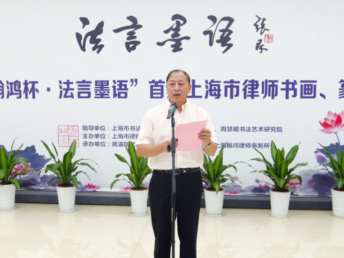 上海市文聯(lián)副主席、上海市書法家協(xié)會主席周志高對此表示祝賀,他在致辭中提到,本次書畫展展現(xiàn)了上海律師對公平正義的追求、對中華發(fā)展傳統(tǒng)的尊重,是上海律師的文化修養(yǎng)和精神世界的體現(xiàn),非常有意義。