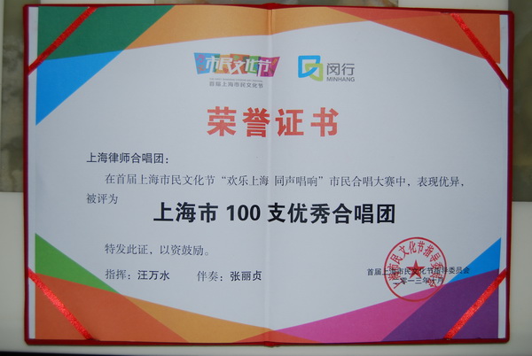 2013年9月5日,上海律師(大成)合唱團(tuán),代表徐匯賽區(qū)出線,參加決賽,在比賽規(guī)定的1分鐘團(tuán)隊(duì)介紹中,沈翼敏團(tuán)長有這樣一句話“今天參加比賽的所有合唱團(tuán)員,均是在職的律師及其助理,我們沒有請一個外援,因?yàn)槲覀儗⑼ㄟ^我們的努力實(shí)現(xiàn)我們的愿望,我們不僅是上海法律界的精英,我們還將成為上海業(yè)余合唱界的優(yōu)秀團(tuán)隊(duì)”。