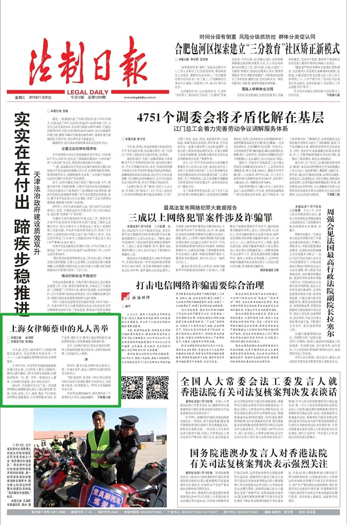 不久前,茫茫人海中有六個(gè)人因器官移植而獲新生,而這些器官均來自同一個(gè)人——上海市誠(chéng)建成律師事務(wù)所(下稱“律所”)的女律師蔡申。