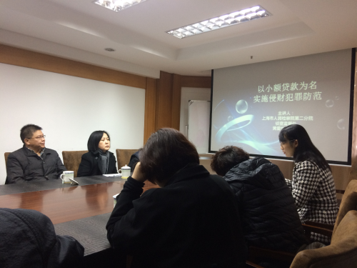 2016年11月25日,上海市人民檢察院第二分院協同楊浦區司法局和區律工委,開展了“以小額貸款為名實施侵財犯罪防范”的專題宣講活動,席間上海市人民檢察院第二分院黃愛華檢察官為大家深入介紹了近期上海刑偵總隊和經偵總隊辦理的相關案件。