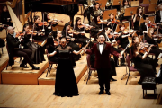 下半場是時代元素和高雅文化的完美融合。《紅旗頌》、《春天的故事》、《我的祖國》帶來滿滿的時代記憶;《浪淘沙·北戴河》、《走進新時代》、《不忘初心》、《我的深情為您守候》、《飲酒歌》依次上演,著名歌唱家韓蓬、趙麗麗為現(xiàn)場觀眾獻上視聽盛宴;著名鋼琴家薛穎佳演奏的《黃河》第四樂章令人心潮澎湃。一首首熟悉的音樂帶領全場觀眾回顧了新中國的偉大變遷,最后,明快熱烈的《拉德斯基進行曲》將全場氣氛推向了高潮。