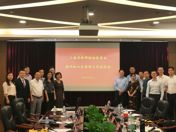 2019年9月16日下午,上海市律協監事會監事長張鵬峰一行到虹口開展律師工作調研活動。虹口區司法局副局長、區律師行業黨委書記胡曉紅、區司法局律公科科長周俊、虹口律工委主任田波等參加了調研活動。