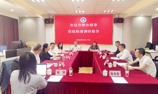 5月17日上午,上海律協副會長陸胤、公共關系部主任金鷹等一行赴楊浦律工委,就上海律協第十二屆理事會工作開展專題調研。楊浦區司法局黨委副書記、副局長符蝶,律工委主任胡衛民以及法律服務管理科、部分律師代表參加會議。