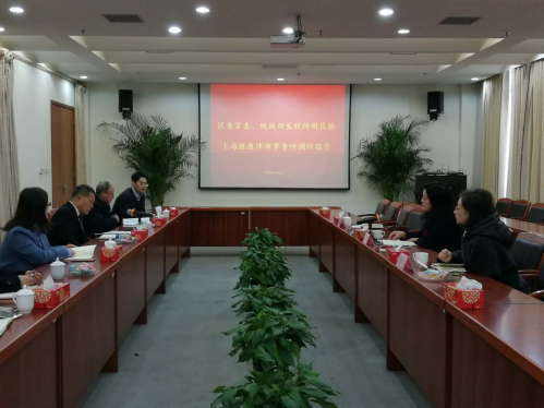 在調研中,徐進副部長強調了律師是社會主義法律工作者,是全面依法治國的一支重要力量。她希望勝康律所繼續發揮我區在新的社會階層聯誼工作上的成功經驗,以黨建為引領,找準新的社會階層人士特點,把律所的各項工作做得更好。