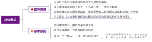 277號(hào)文就全面推進(jìn)上海法治國(guó)企建設(shè)提出的總體要求包括指導(dǎo)思想、基本原則和工作目標(biāo)三個(gè)方面。其中,指導(dǎo)思想和基本原則總結(jié)如下: