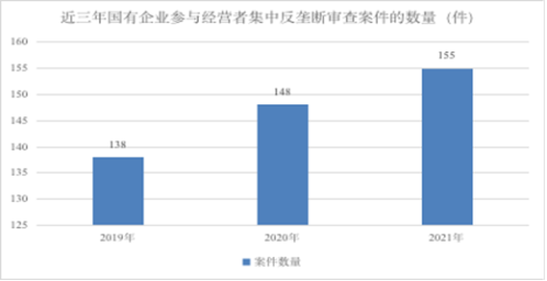 國有企業是我國市場經濟中十分重要的市場主體,也是我國反壟斷法規范的重要對象。根據近三年市場監管總局發布的《中國反壟斷年度執法報告》可知,市場監管總局對于經營者集中的反壟斷監管持續加強,而近三年來國有企業參與經營者集中反壟斷審查案件的數量也逐年上升。具體情形如下: