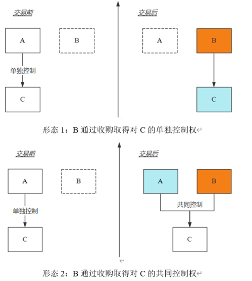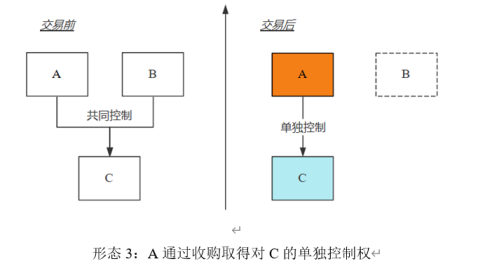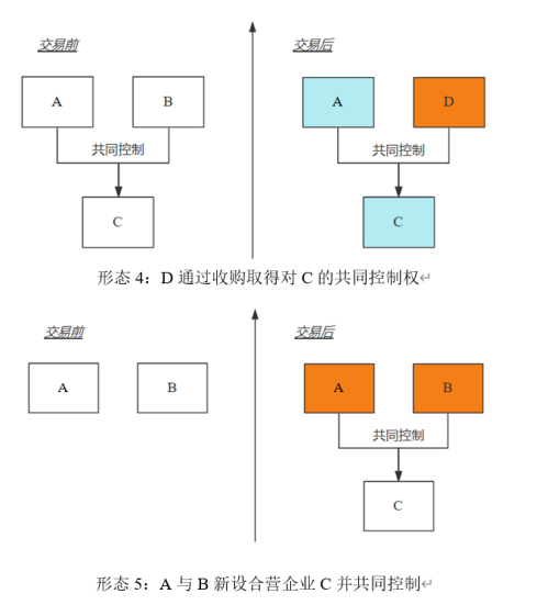 其他集中交易中的申報義務人,可以參見前文關于控制權變化形態的圖示(方框填充顏色為橙色的即為申報義務人)。