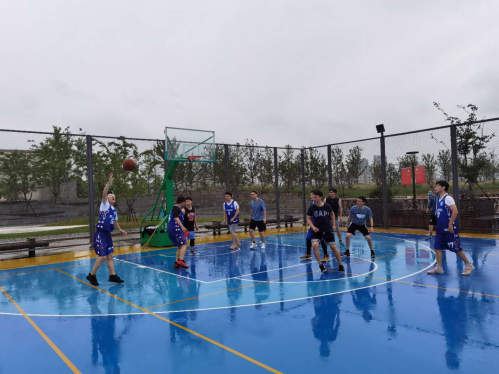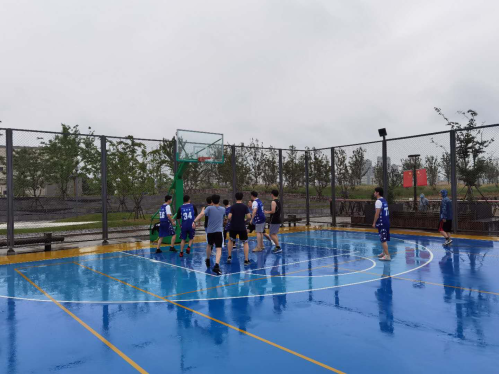 隨著裁判一聲哨響,比賽正式開始,雙方球員立即全身心投入比賽中。雖然比賽過程中時常下起小雨,但這完全不能澆滅雙方球員的比賽激情,雙方球員在保證安全的前提下在球場上盡情拼搏。整場比賽過程中,雙方球員勢均力敵,憑借精湛的球技和默契的配合頻頻向對方籃筐發(fā)起進攻,掀起一陣陣小高潮,奉獻一次又一次的精彩瞬間,每個球員都沉浸在緊張激動的氛圍里,使整個比賽過程高潮迭起。