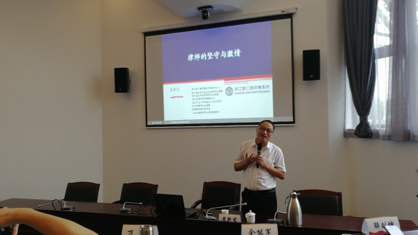 由浙江省律協勞保委副主任,黃新發老師給大家帶來的《律師的堅守與激情》,劉桂明先生曾概括“律師這個職業,其實是一個看起來很美、聽起來很闊、說起來很煩、做起來很難的職業。”即便如此,每年還是有大批法學院畢業的青年學子,前赴后繼的加入到這個隊伍。除了身邊大批成功律師的示范和引導作用,大多數人都是為了圓心中存在已久的律師夢。夢想是指引我們走上這條道路的航標燈,它引燃了我們內心的激情,煥發我們的潛能,讓我們能夠堅守自己的信念,在這條路上披荊斬棘,堅定的朝著自己的目標邁進。激情煥發潛能、堅守才能成功……
