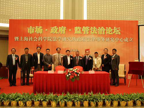 2011年10月31日,上海社科院法學所與融孚律師事務所在國際會議中心舉行共建“政府法律事務研究中心”簽約儀式和“中心”揭牌儀式。中心將聚集專家、學者、政府領導、大型企業高管、律師等開展以完善市場體系中的政府依法行政、公共政策制訂與評價、國資監管、市場監管、律師作為第三方提供服務、大型公共項目建設、運營等課題進行研究。儀式結束舉行的“市場·政府·監管法治論壇”,來自社科院、華政和美國律所與融孚所的專家、學者、律師發表了政府對金融市場監管的演講和研討,150余名政府工作人員、金融機構人員、律師、學者、媒體記者等出席。
