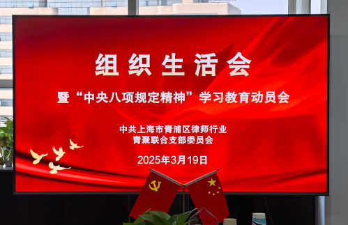 為深入貫徹落實黨的二十大和二十屆三中全會精神,進一步強化黨員律師的政治意識和紀律意識,推動全面從嚴治黨向基層延伸,青聚聯(lián)合黨支部于3月19日組織召開“中央八項規(guī)定精神”學(xué)習(xí)教育動員會。青聚聯(lián)合黨支部書記史明生主持會議,青浦區(qū)律師行業(yè)總支部委員會副書記張國華出席會議并講話,青聚聯(lián)合支部黨員律師參加會議。
