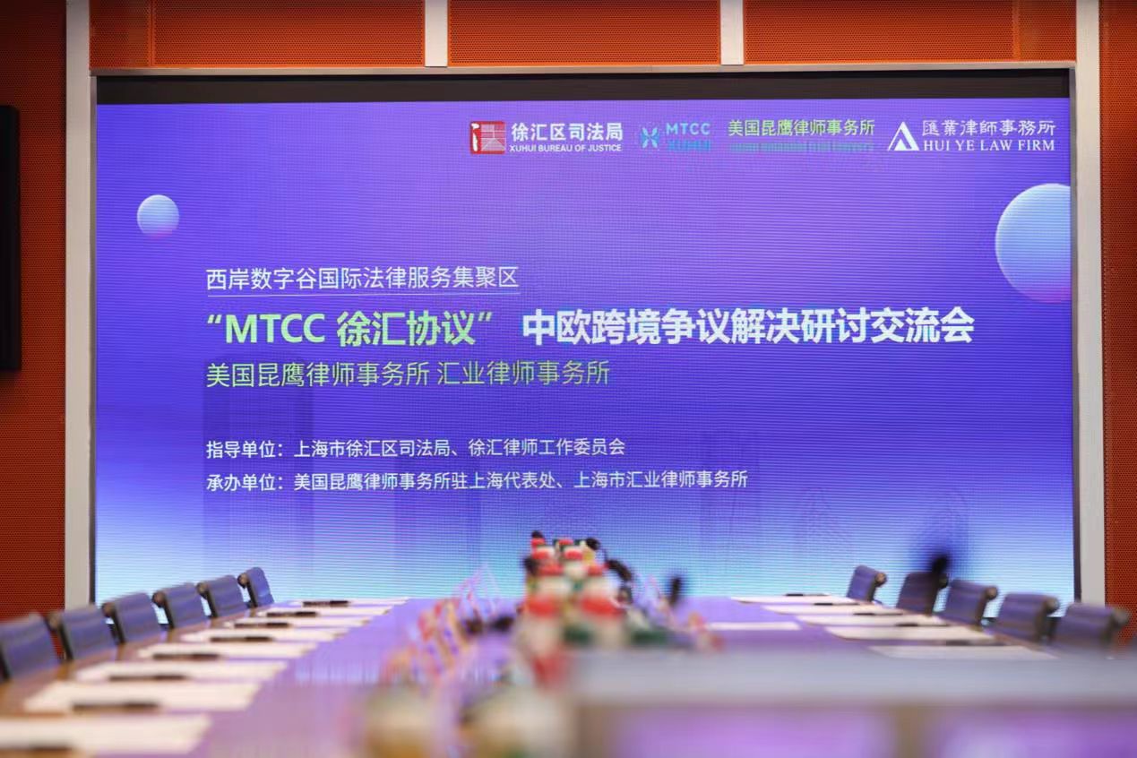 2024年10月25日下午,由徐匯區司法局、徐匯律工委指導,美國昆鷹律師事務所駐上海代表處和上海市匯業律師事務所共同承辦,西岸數字谷國際法律服務集聚區“MTCC徐匯協議”中歐跨境爭議解決研討交流會在徐匯西岸數字谷智塔45樓“紅會議室”成功舉辦。本次交流會是一場涉外法律業務全英文研討活動,圍繞中歐跨境爭議解決、法律實務合作和國際合規監管等熱點話題,特邀昆鷹德國辦公室多位合伙人及資深涉外律師、高校專家、企業代表等蒞臨現場,深度交流中歐跨境爭議解決實踐經驗。此次活動還吸引了近30名來自徐匯區以外的知名律所、金融投資公司、生物醫療企業、高校等代表線上報名,與會人員共60余名。
