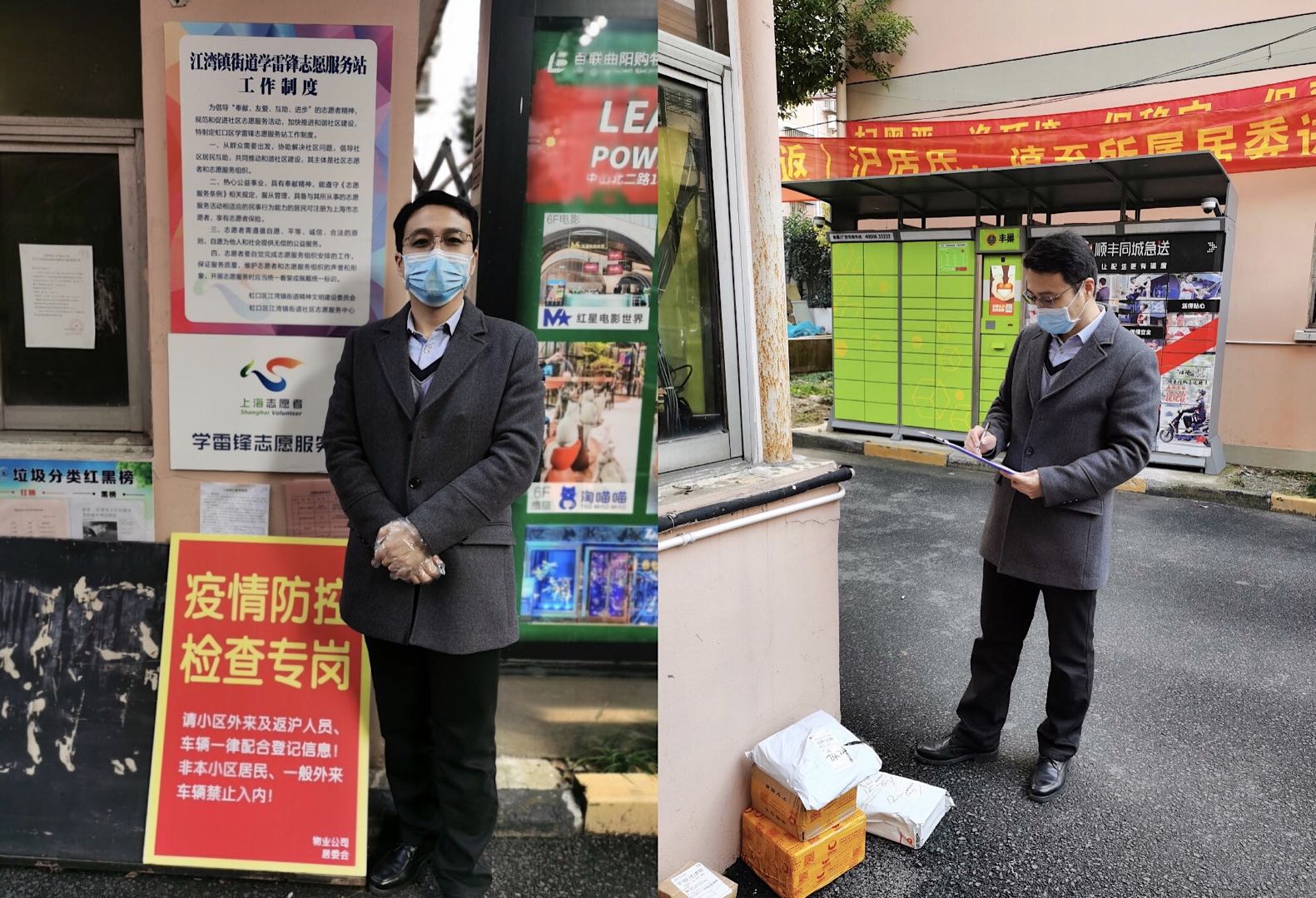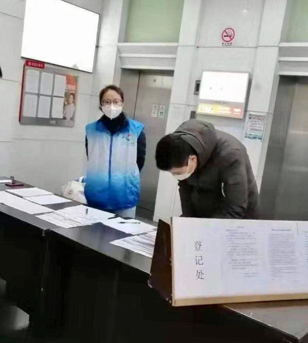 北京觀韜中茂(上海)律師事務(wù)所張政律師與其他志愿者2月12日上午在嘉興路街道瑞虹路25號小區(qū)志愿現(xiàn)場