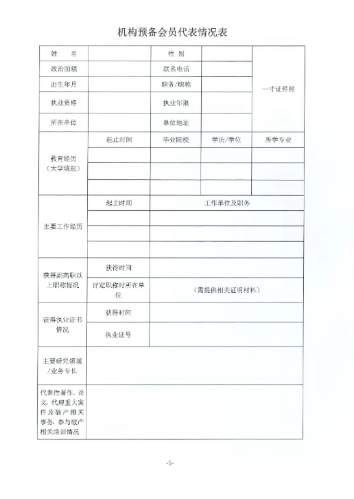 個人申請人需為在本會機構會員或者在申請機構預備會員執業的律師、注冊會計師或清算師,且具有從事破產相關案件的經歷或發表過相關文章。