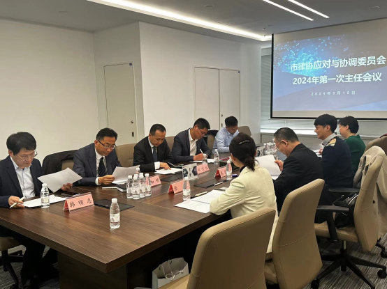 3月15日下午,上海律協應對與協調委員會召開2024年度第一次主任工作會議。會議由應對與協調委主任譚春明主持,上海律協會長邵萬權,應對與協調委副主任周知明、陳凱、韓明志、易國勇、張玲、錢軍亮參加會議,上海市律師協會秘書長助理、辦公室主任陶麗萍列席會議。