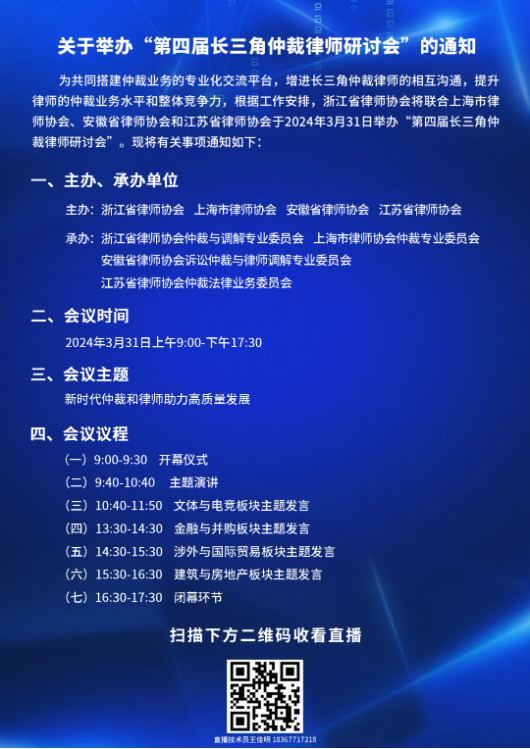 為共同搭建仲裁業(yè)務(wù)的專業(yè)化交流平臺,促進(jìn)長三角仲裁律師的相互溝通,提升律師的仲裁業(yè)務(wù)水平和整體競爭力,現(xiàn)定于3月31日舉辦以“新時代仲裁和律師助力高質(zhì)量發(fā)展”為主題的第四屆長三角仲裁律師研討會。現(xiàn)將有關(guān)事項(xiàng)通知如下: