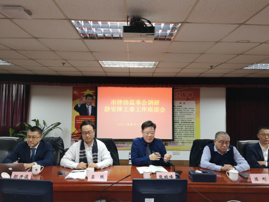 張鵬峰監事長表示,感謝靜安區司法局和律工委對監事會工作的支持,會后將對調研中提及的意見和建議認真歸納總結,并建議理事會研究靜安在律工委工作方面的經驗探索。