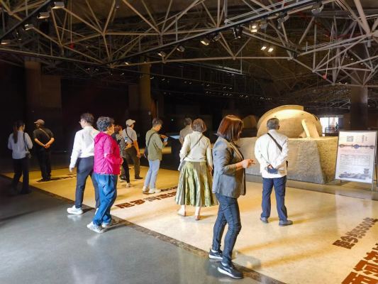 2023年10月25日早晨九點(diǎn),退休老律師們?cè)趶V富林文化遺址公園附近集合后乘坐了園區(qū)游覽車,在律工委工作人員的陪同以及導(dǎo)游的帶領(lǐng)下,開始參觀文化展示館、考古遺址展示館、陶藝館以及木藝館。老律師們對(duì)于館內(nèi)的藝術(shù)品都稱贊不已,紛紛拍照留念,對(duì)導(dǎo)游的講解也是聽得津津有味。