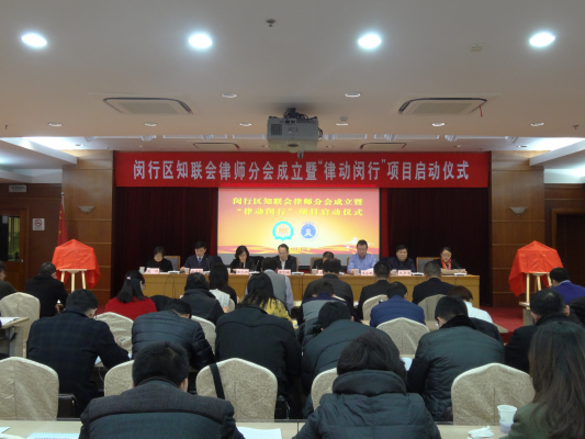 2016年12月27日下午,區知聯會律師分會成立暨“律動閔行”項目啟動儀式在閔行區政府順利舉行。市委統戰部副部長房劍森、市司法局黨委委員、副局長王協、區委常委、統戰部長李紅珍、區政協副主席、知聯會會長汪小帆、市委統戰部社會工作處處長王羅清、區統戰部副部長、區社院院長巫嶺、區司法局黨委書記、局長金海民、區司法局黨委副書記周信根應邀出席會議,區統戰部新階層人士科、區司法局律公科相關負責人,區知聯會律師分會首批會員60余人參加會議。
