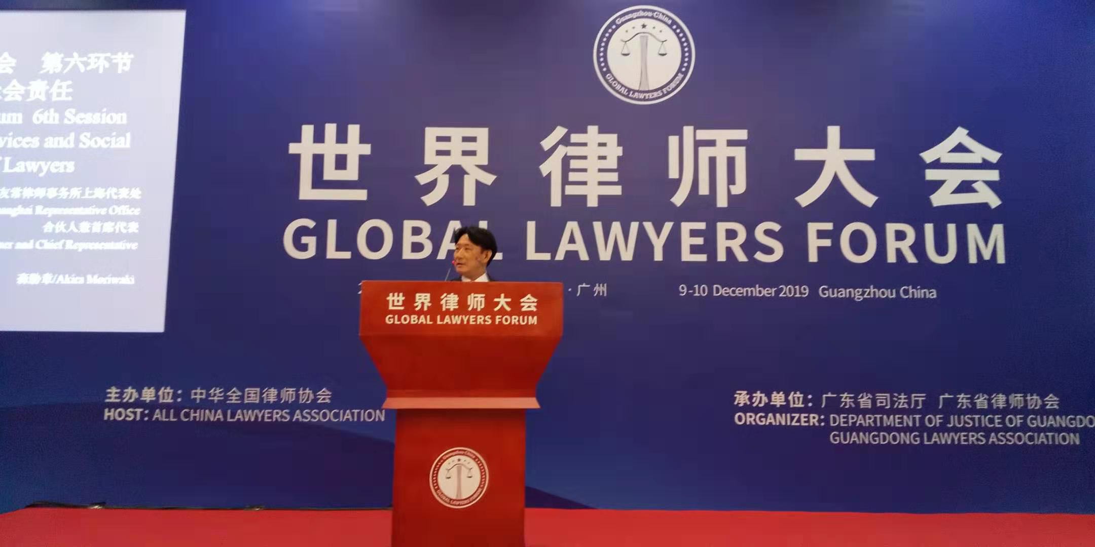森脅章律師已經(jīng)在中國(guó)工作生活20余年,一直關(guān)心著中國(guó)律師業(yè)的發(fā)展。在2019年廣州舉行的世界律師大會(huì)上,森脅章律師曾受邀參會(huì),并以“日本在‘律師公益與社會(huì)責(zé)任’方面的制度和實(shí)踐”為題作了發(fā)言。