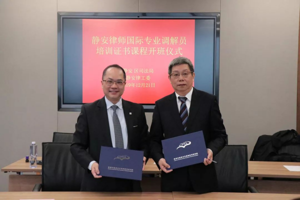 12月21日,第二屆“滬港兩地法律人才交流研討項目”暨靜安律師國際專業調解員培訓證書課程啟動。區委常委、統戰部部長凌惠康、區司法局局長凌淑蓉、區僑辦主任張蓓、區司法局副局長李敏等領導以及香港國際爭議解決及風險管理協會創會主席羅偉雄、副主席陳顥文、靜安律工委主任王昊東等出席開班儀式。