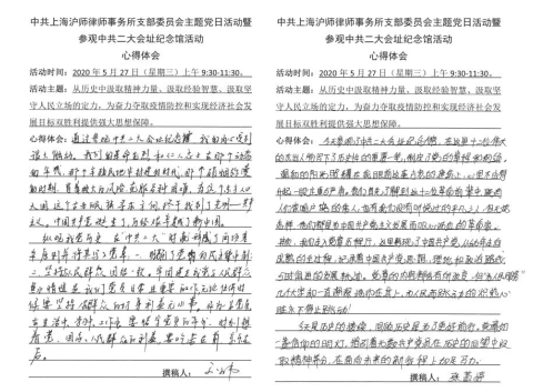 主題黨日活動結束后,滬師黨支部最年輕的黨員——今年22歲的王博同志寫下了這樣一段心得體會。