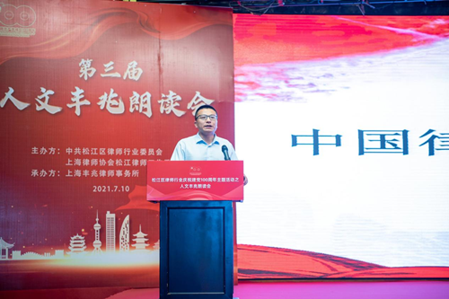 2021年7月10日,“崢嶸百年、不忘初心”松江區(qū)律師行業(yè)慶祝建黨100周年主題活動(dòng)之第三屆人文豐兆朗讀會(huì)活動(dòng)隆重舉行。此次活動(dòng)由中共松江區(qū)律師行業(yè)委員會(huì)、上海律協(xié)松江律師工作委員會(huì)主辦,上海豐兆律師事務(wù)所承辦。