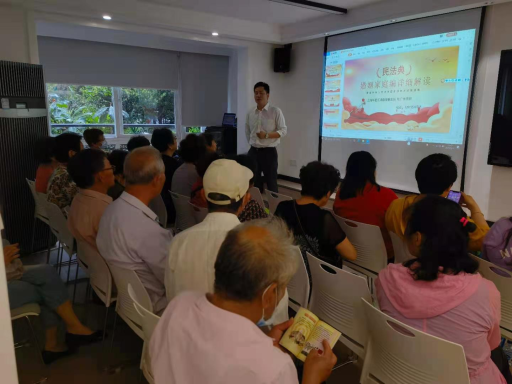 2021年5月11日下午,黃浦青年律師民法典宣講團成員,上海華夏匯鴻律師事務所杜廣宇律師應黃浦區(qū)五里橋街道邀請,面向五里街道的紫荊居委、龍華居委兩個居委的工作人員及居民,在紫荊居委會舉行了主題為《民法典—婚姻家庭編與繼承編的解讀》的講座。紫荊與龍華居委共有40余位居民參加了講座。