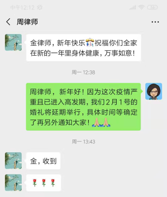 我區金美霞律師(奉賢律工委秘書)為避免疫情期間人員聚集,不但將原定于2020年2月1日中午的婚宴取消,還在春節期間主動加班工作報送統計相關數據,積極配合新型冠狀病毒疫情防控工作,充分體現了“舍小家顧大家”的高尚情懷,展現了新時代下的律師“愛家愛國”、“聽黨話、跟黨走”的思想品格。