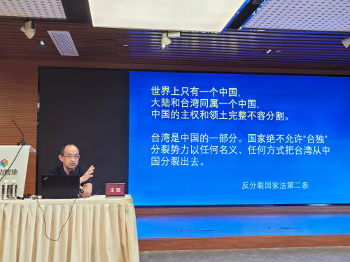 國防大學、上海市軍民融合發展研究會戰略研究室主任王強教授就“實現祖國完全統一的歷史任務”做專題講座。王強教授從臺灣問題產生出發,圍繞如何掌握兩岸關系主導權主動權,如何抵御臺獨分裂和外來干涉圖謀等多個角度,對推進祖國統一進程進行了全面系統的闡述,為圍繞“進一步全面深化改革,推進中國式現代化”開展參政履職工作提供了清晰的思路,指出了明確的路徑。活動現場提問環節,王強教授圍繞如何把全會精神轉化為推進祖統工作的強大力量,促進兩岸經濟文化交流合作,深化兩岸各領域融合發展等方面進行了互動交流。