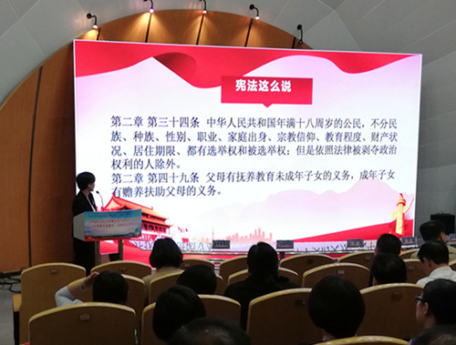啟動(dòng)儀式后,“法律進(jìn)企業(yè)”宣講團(tuán)成員上海豐兆律師事務(wù)所鄔曉青律師為與會(huì)人員進(jìn)行憲法講座。后續(xù),宣講團(tuán)成員將進(jìn)一步深入產(chǎn)業(yè)集群,開展100場(chǎng)法治講座。
