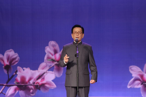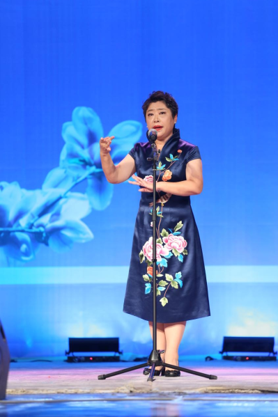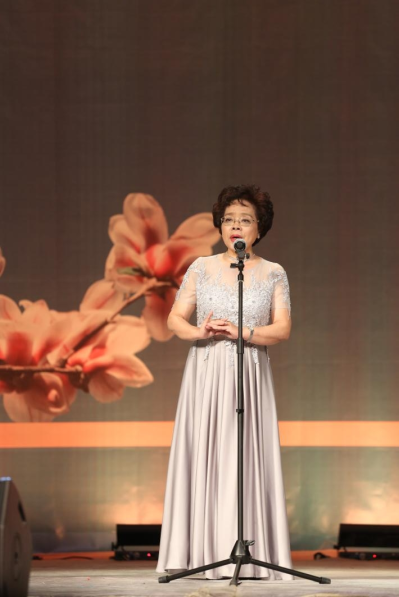 本次演出的嘉賓演唱也是一大亮點,市政協的卑根源先生的《沙家浜》唱段,嗓音高亢嘹亮;市人大的唐國才先生的《追韓信》唱段,麒派韻味雋永;作曲家沈利群老師的《智取威虎山》唱段,響遏行云,閉上眼睛,根本聽不出是一位年屆耄耋的老太太所唱的;最讓人激動的是梅大師的入室弟子、88歲高齡的畢谷云先生也興致勃勃地蒞臨指教,并即興演唱了《穆桂英掛帥》的選段。他一張嘴,臺下立刻安靜了下來,字正腔圓、神完氣足的梅派唱腔回蕩在劇場里,余音繞梁,久久縈回在觀眾的耳邊,真不愧是藝臻化境的一代名家、典型猶存的魯殿靈光。