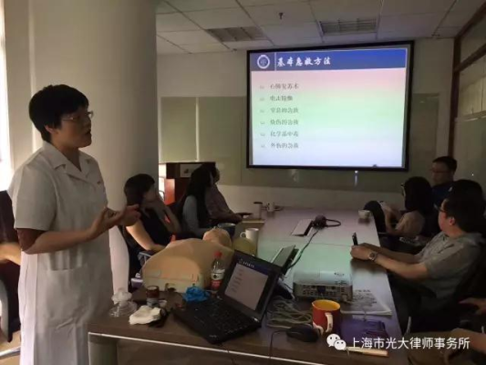 2017年5月19日,上海市光大律師事務所黨支部特別邀瑞金醫院急診科盛主任,為各位律師帶來心肺復蘇、AED使用、急性呼吸道梗阻的救治、簡易包扎、燙傷治療等急救知識培訓,并現場模擬操作。