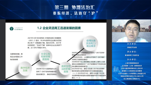 在主旨演講環(huán)節(jié),與會嘉賓圍繞“就業(yè)”、“金融”、“科創(chuàng)”三個關(guān)鍵詞,就疫情后勞動關(guān)系的新變化、商貿(mào)零售行業(yè)的靈活用工及法律風(fēng)險防范;金融工具在經(jīng)濟(jì)重振中的運(yùn)用、投資并購業(yè)務(wù)中的ESG問題;張江黃浦園助力科創(chuàng)企業(yè)的扶持政策、科創(chuàng)企業(yè)資本化中的法律問題等方面進(jìn)行了分享。
