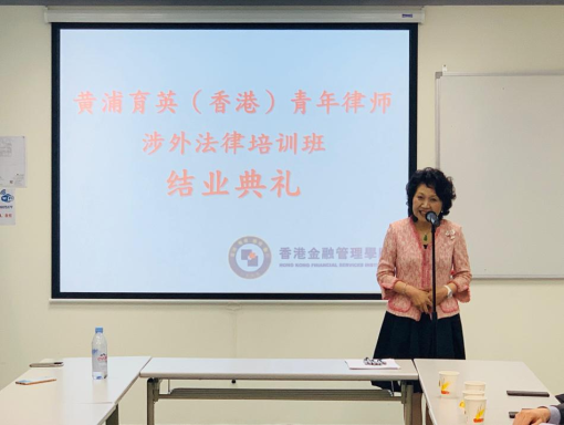 轉眼間,黃浦(育英)青年律師涉外法律培訓班迎來了最后一個培訓日暨結業典禮。此次培訓班的結業典禮安排在香港金融管理學院本部進行。香港金融管理學院校董會主席王中英女士、黃浦區司法局副局長冒擁軍、黃浦區僑辦副主任施海燕、黃浦區司法局律公科科長陳磊、辦公室主任張圓、區僑辦張蔚等,出席了結業典禮。