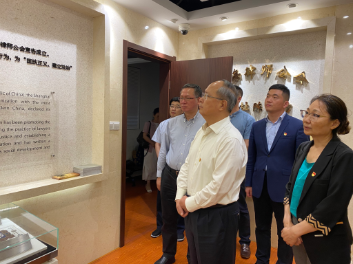 2021年7月2日下午,市司法局黨委書記、局長陸衛東,局黨委副書記、市律師行業黨委書記劉衛萍,律工處處長葉斌,副處長張銘等一行人參觀上海律師公會舊址陳列館。黃浦區委常委、政法委書記呂南停陪同參觀。