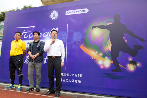 隨后,上海市律師協會副秘書長王旭峰發表了熱情洋溢的講話,他動員球員們拼搏協作,共同為大家奉獻一屆精彩的足球賽事。