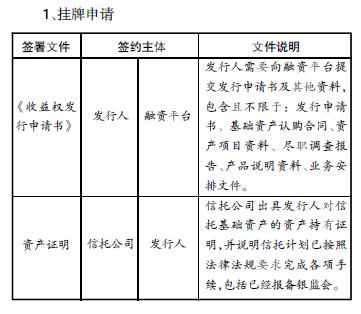 鑒于現有法律法規對金融資產交易平臺的業務流程并無統一的規定,通常情況下,各交易平臺會就不同掛牌產品自行制定相應的“交易規則”并報經監管部門批準及/或備案。就前述“信托計劃受益權之收益權”掛牌產品的基本業務流程而言,主要包含如下幾方面:
