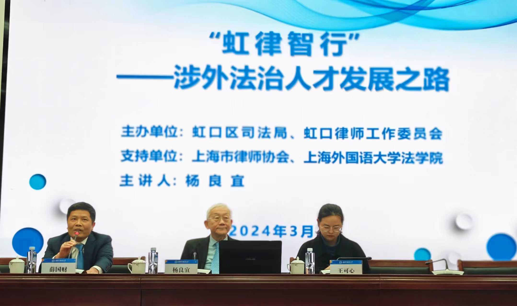 立足“虹口北外灘 都市新標桿”定位,伴隨北外灘國際法律服務港全面起勢,涉外法治人才需求熱在虹口持續升溫。虹口區司法局因勢利導,聚力打造產學研一體化的涉外法治人才培養模式,攜手一眾學院高校,對接各大律師事務所和仲裁機構,引入市律協專業委員會和區律工委“專家智庫”,依托本區“虹律智行”律師業務培訓品牌,讓理論研究和實務探索在同臺“碰撞融合”,讓學者教授、從業律師和莘莘學子于同堂切磋交流。近日,“選擇北外灘”系列活動之“虹律智行”論壇更是迎來了重量級授課嘉賓——楊良宜教授。
