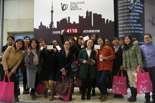 講座前后,部分參加培訓(xùn)的青年女律師還分批前往附近的“黑暗中對(duì)話”上海體驗(yàn)館,參加了“與黑暗對(duì)話”拓展體驗(yàn)活動(dòng)。體驗(yàn)活動(dòng)的目的是將參與者置身于完全黑暗的環(huán)境中,迫使參與者失去視覺(jué)的依賴,以開(kāi)啟其它的感官能力,借此引發(fā)參與者對(duì)“能力”重新定義。