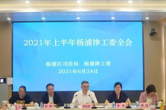 近日,楊浦區召開2021年上半年度律工委全會,區司法局黨委書記、局長鄧遠見出席并講話,副局長薛敏主持會議。楊浦律工委工作顧問、主任、委員20余人參加。
