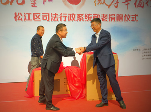 10月27日,松江區司法局、上海市律師協會松江律師工作委員會、松江公證處在松江區葉榭鎮幸福老人村舉行了重陽節敬老活動,區司法局局長莫桂興、副局長陳炳泉、局相關業務部門負責人、松江公證處主任、松江律工委主任、委員及松江區全體老律師參加活動。