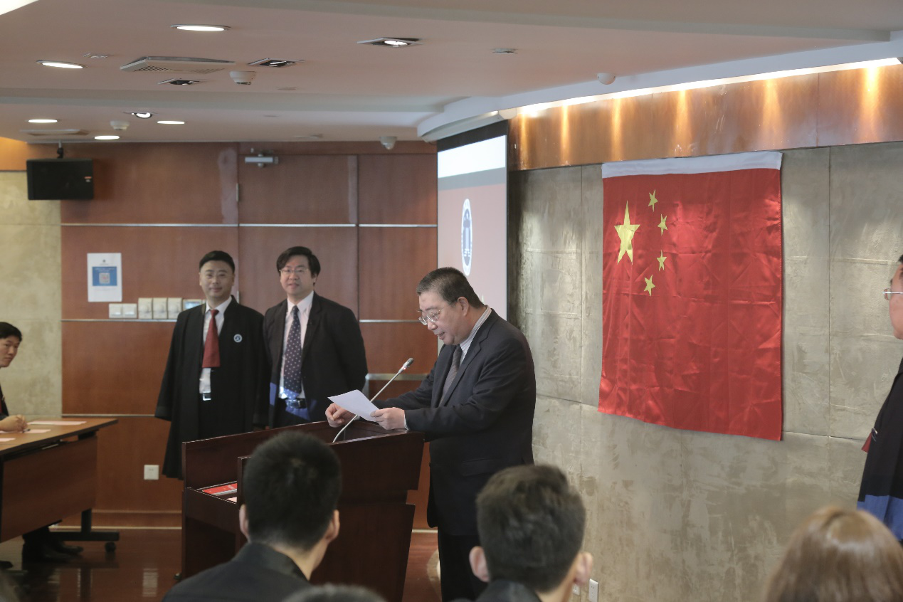 上午10時,忻峰秘書長宣布儀式開始,宣誓人全體起立,面向國旗,同時奏唱中華人民共和國國歌。隨后,領誓人管建軍副會長左手撫按《中華人民共和國憲法》,右手舉拳,領誦誓詞,其他宣誓人整齊列隊站立,右手舉拳,跟誦誓詞。