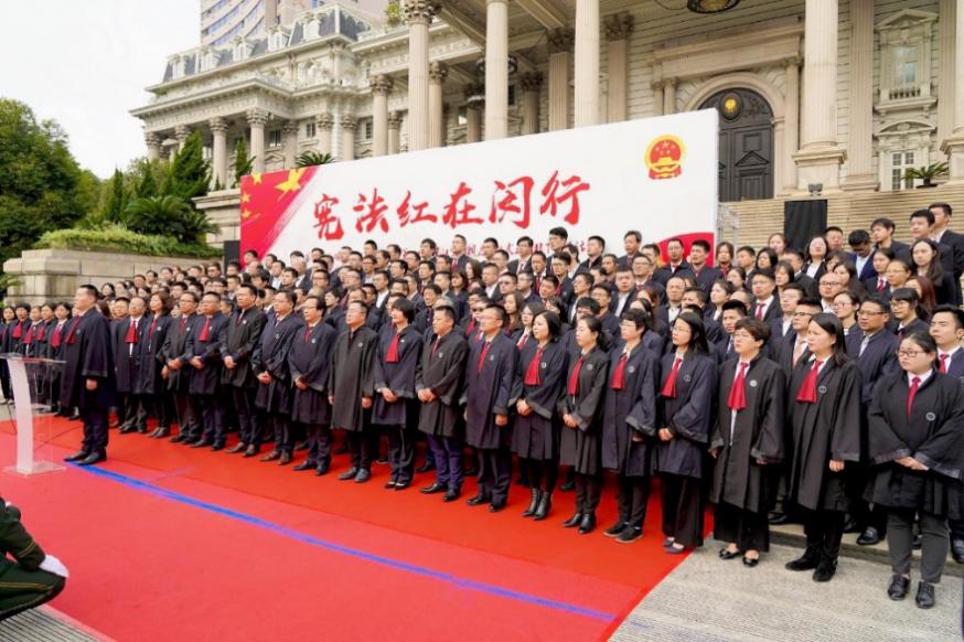 今年12月2日至12月8日是我國第一個“憲法宣傳周”,12月4日是第五個國家憲法日。為深入貫徹落實習近平總書記全面依法治國新理念、新思想、新戰略,增強律師職業使命感和榮譽感,弘揚憲法精神,維護憲法權威,今天, “憲法宣傳周”首日,上海市司法局、上海市律師協會組織上海律師舉行了莊重的集體宣誓儀式。