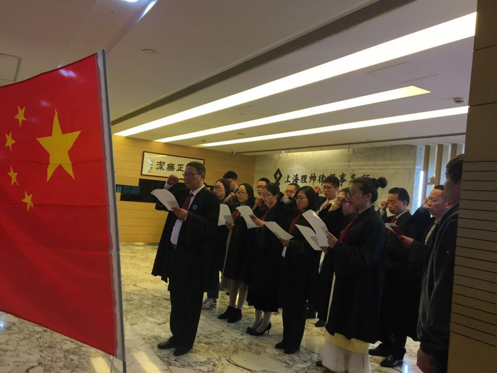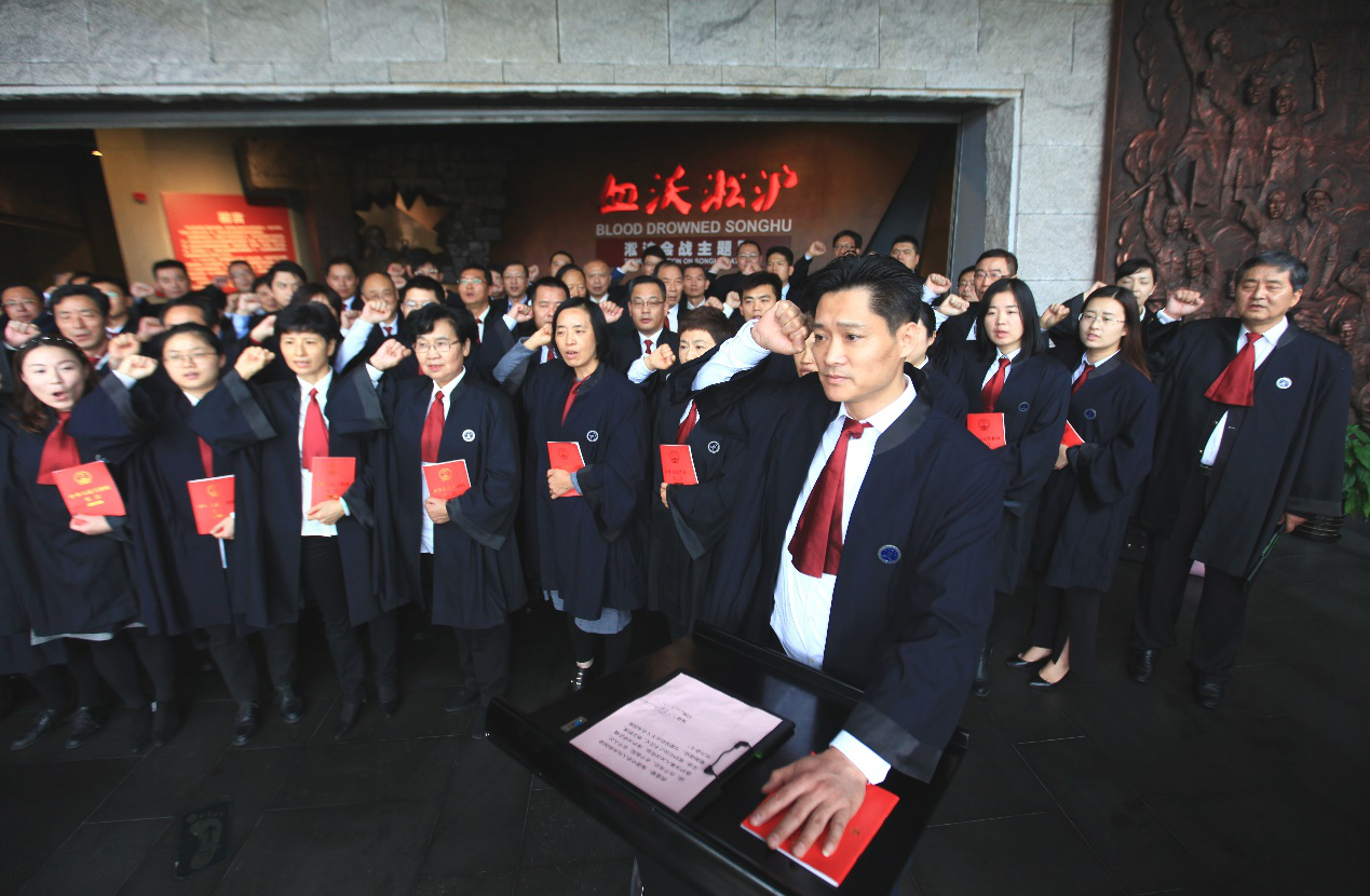 與此同時,上海各區司法局、律工委和律師事務所也在今日組織了律師宣誓活動。如:黃浦區律師在上海律師的發源地——上海律師公會舊址陳列館舉行了宣誓儀式;101名律師在寶山淞滬抗戰紀念館參加宣誓,寶山電視臺全程錄播等。據統計,今天上海參加宣誓儀式的律師超過5400名。憲法宣傳周期間,還將有數千名律師進行宣誓。誓言在口,更在于行,廣大上海律師勇于擔當、志存高遠,堅決履行律師使命、捍衛法律尊嚴,以實際行動踐行誓言!