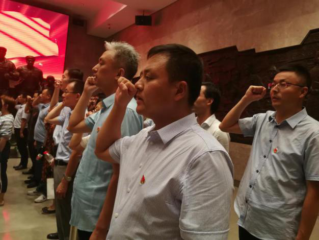主題活動第三項議程為“重溫入黨誓詞”,面向鮮紅的黨旗,大家舉起右手,莊嚴宣誓:我志愿加入中國共產黨,擁護黨的綱領,遵守黨的章程…。這莊嚴的誓言,代表著一名名共產黨員的責任和義務。要始終牢記入黨誓詞,才能不忘使命和初心。