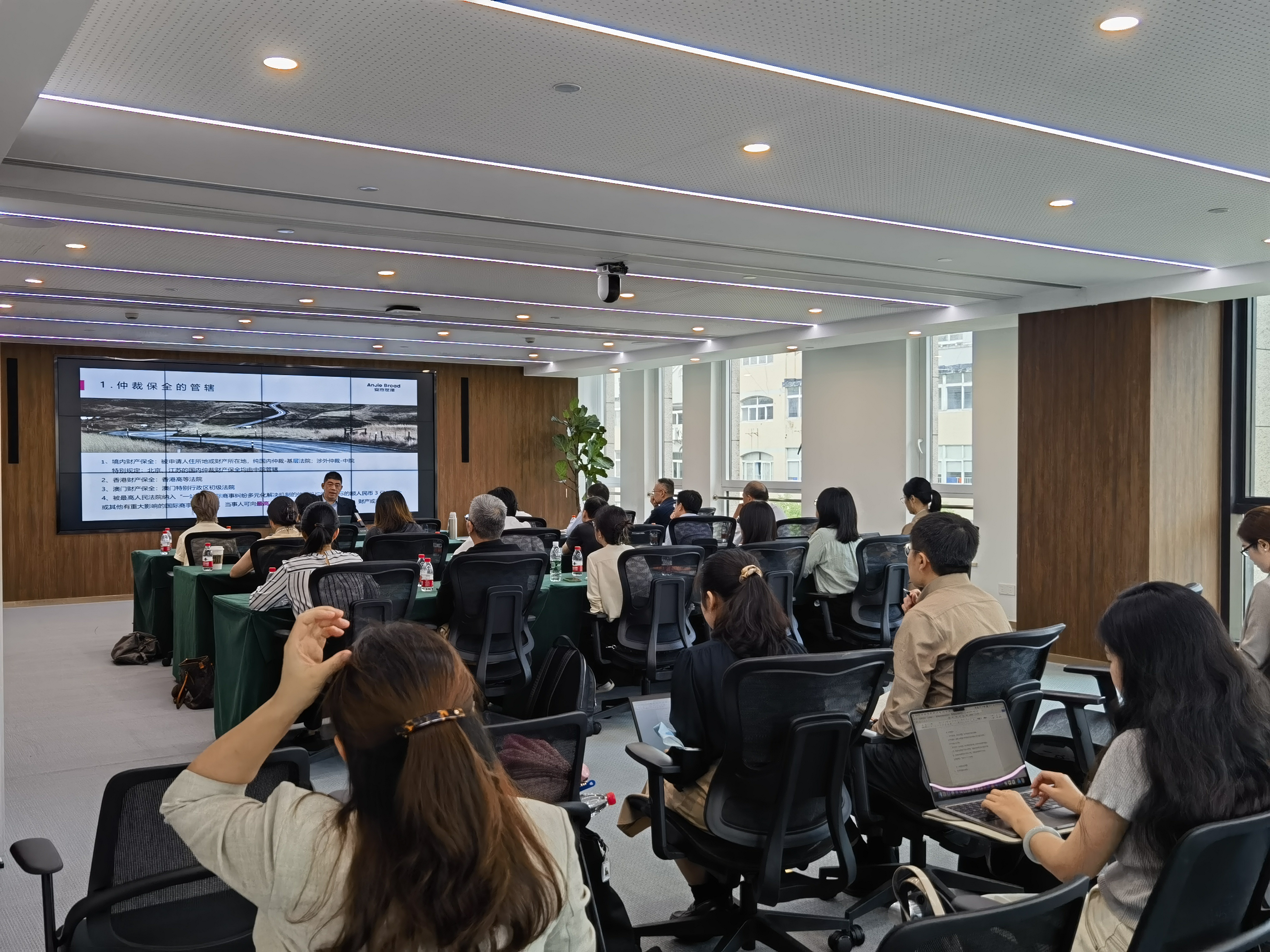 在接近兩個小時的培訓中,連律師從商事仲裁的九個程序要點出發,向青年律師介紹了商事仲裁各個環節的代理要點,包括仲裁協議的有效性、仲裁機構的選擇、仲裁保全的技巧、如何對仲裁管轄提出異議、如何引入其他當事人等等。連律師結合自身辦案經驗,從實務案例出發討論仲裁與訴訟的區別與聯系,分析律師在代理商事仲裁案件時應當重點掌握的能力與技巧。作為上海國際仲裁中心和上海仲裁委員會的仲裁員,連律師也從仲裁員的角度分享了商事仲裁案件的一般裁判原則,以及仲裁員對代理律師的期待。