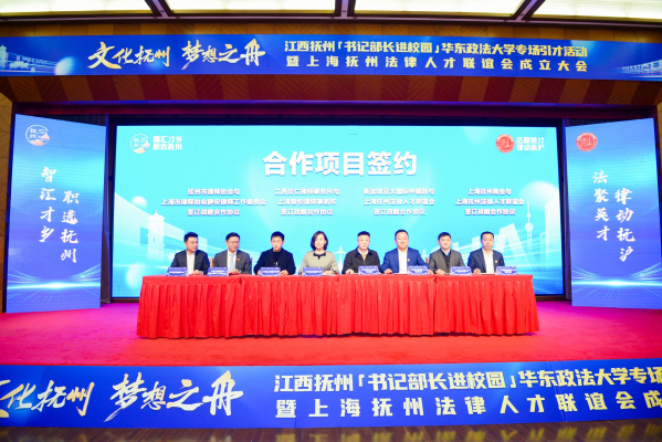 12月23日,以“文化撫州、夢(mèng)想之舟”——華東政法大學(xué)“校園撫州日”為主題的江西撫州“書記部長進(jìn)校園”華東政法大學(xué)專場(chǎng)引才活動(dòng)暨上海撫州法律人才聯(lián)誼會(huì)成立大會(huì)在此舉行。江西撫州市委書記魏曉奎,華東政法大學(xué)黨委副書記、紀(jì)委書記應(yīng)培禮,江西省政府駐上海辦事處黨組成員、副主任姚軍章,江西撫州市委常委、市委組織部部長肖妮娜,江西撫州市人大常委會(huì)副主任、市委秘書長趙榮貴,上海市靜安區(qū)司法局黨委書記、局長呂平和靜安區(qū)律師工作委員會(huì)主任丁德應(yīng),上海市律協(xié)靜安區(qū)律師工作委員會(huì)副主任邵開俊、張玉霞等領(lǐng)導(dǎo)、嘉賓出席本次活動(dòng)。