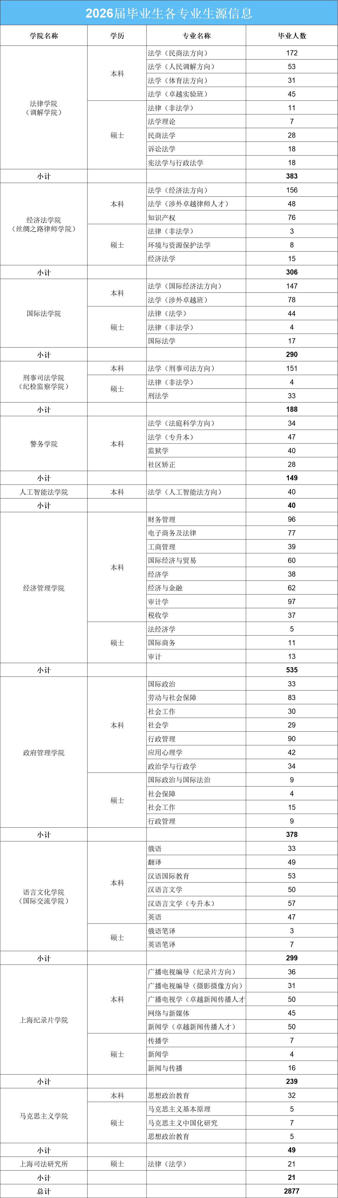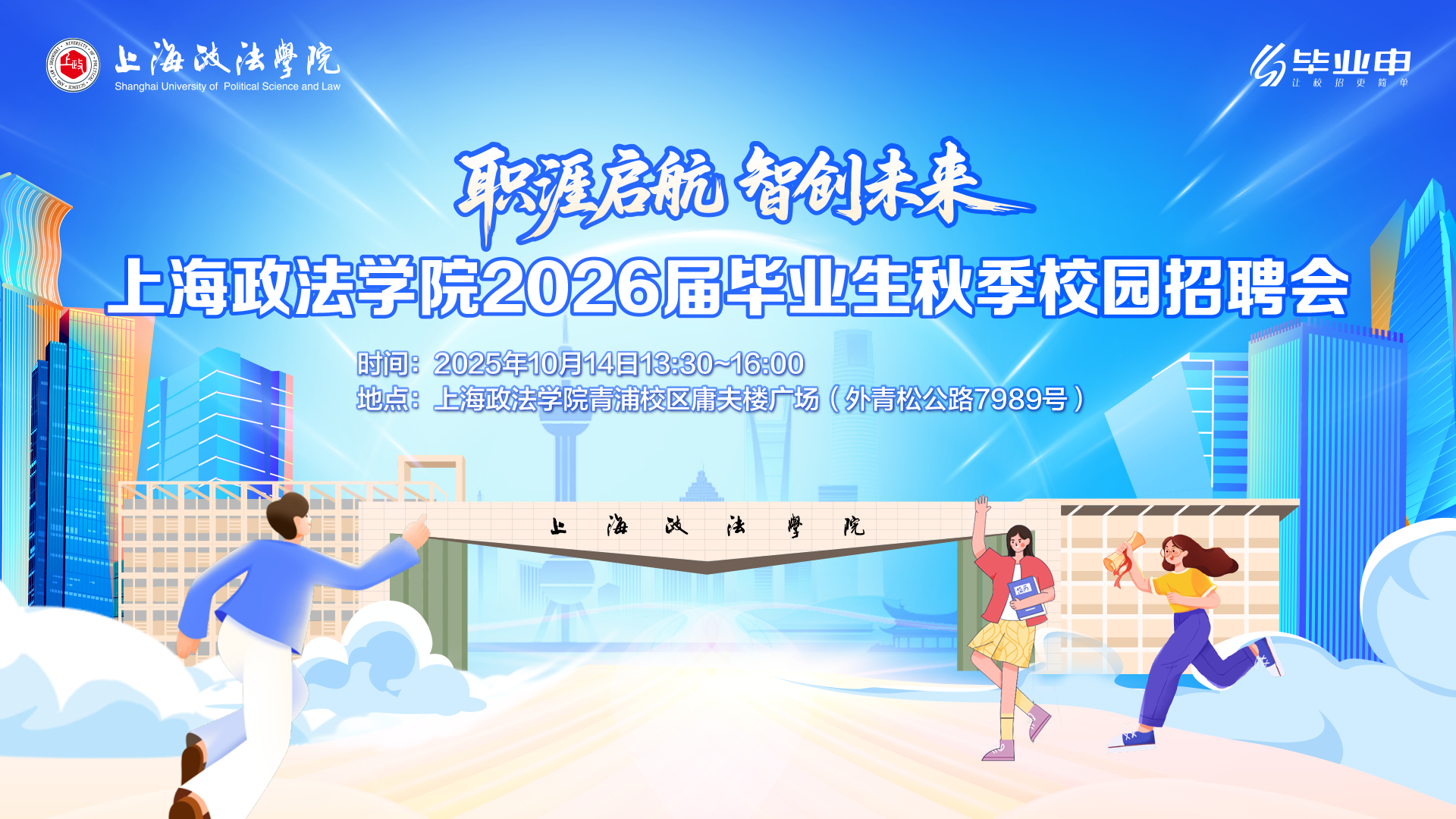 衷心感謝貴單位長期以來對我校畢業生就業工作的悉心關懷與鼎力支持!為落實黨中央、國務院關于高校就業工作的決策部署,搭建人才供需對接橋梁,促進畢業生高質量充分就業,上海政法學院茲定于2025年10月14日(星期二)舉辦“職涯啟航·智創未來”2026屆畢業生秋季校園招聘會,誠邀各用人單位蒞臨我校廣納賢才!